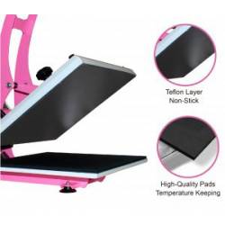 Prensa de calidad industrial con la última tecnología de calentamiento y una placa inferior pendiente de patente para mejorar el rendimiento de la transferencia. La estabilidad también se ha mejorado con un sensor de temperatura de alta precisión y un controlador de tiempo preciso.