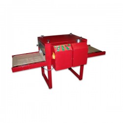 Solution es un túnel diseñado para producción industrial con un motor AC presente en 7 modelos distintos según el ancho/largo y el tiempo de exposición al calor del sustrato. La boca de entrada de la máquina es ajustable a todo tipo de productos y permite conservar la temperatura del interior. La cinta transportadora o cinturón está compuesto de fibras de vidrio recubierta de teflón y rodillos para soportar la carga pesada.