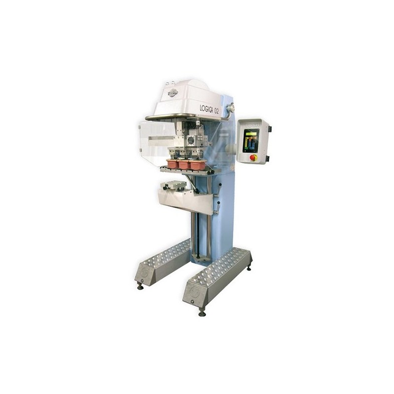 Logica 02 est une machine haute performance avec laquelle vous obtiendrez d'excellents résultats dans la tampographie de vos produits. C'est une machine facilement configurable pour une installation sur n'importe quelle ligne de production, même pour le chargement et le déchargement entièrement automatiques des produits. Il a une force d'estampage de 800 N avec la possibilité de tamponner jusqu'à 4 couleurs.