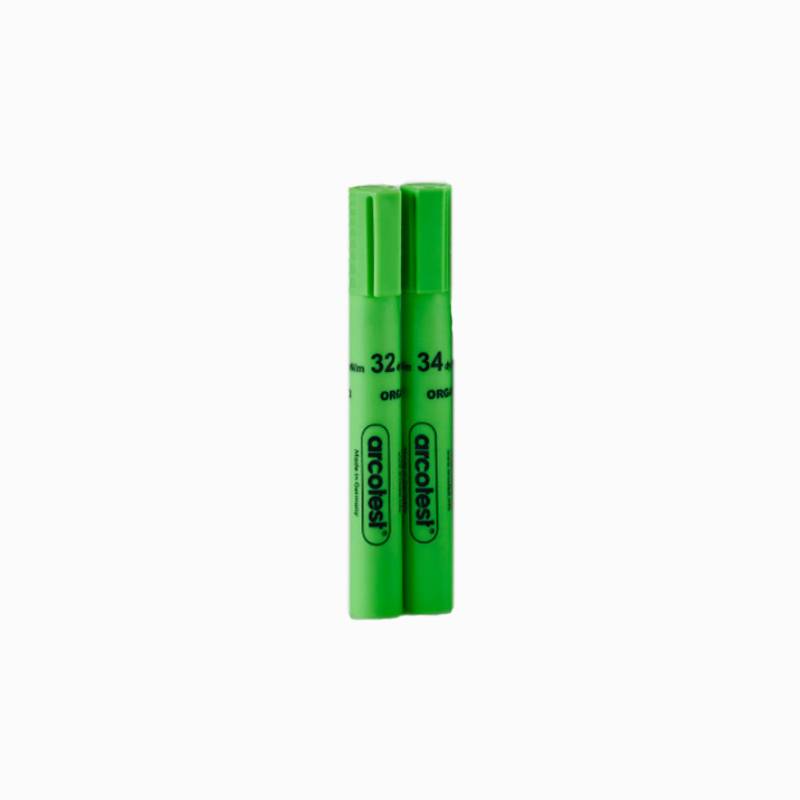 Les marqueurs de test respectueux de l'environnement sont des marqueurs de test de 5 ml avec une tension superficielle spécifique et une teinte verte, qui ont été développés pour pouvoir offrir des encres de test non toxiques et exemptés des exigences d'étiquetage. L'application et la manipulation de ces marqueurs de test sont régies par les normes DIN 53364 et ISO 8296.