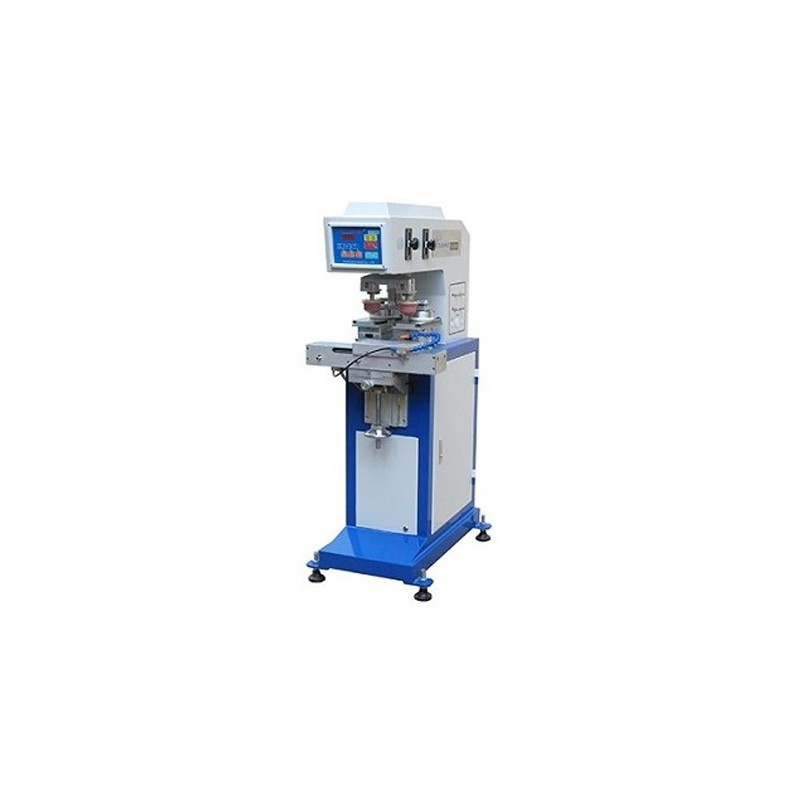 TE200 1 to 3 color shuttle pad printer. Its indexing system allows for fast and effective pad printing.