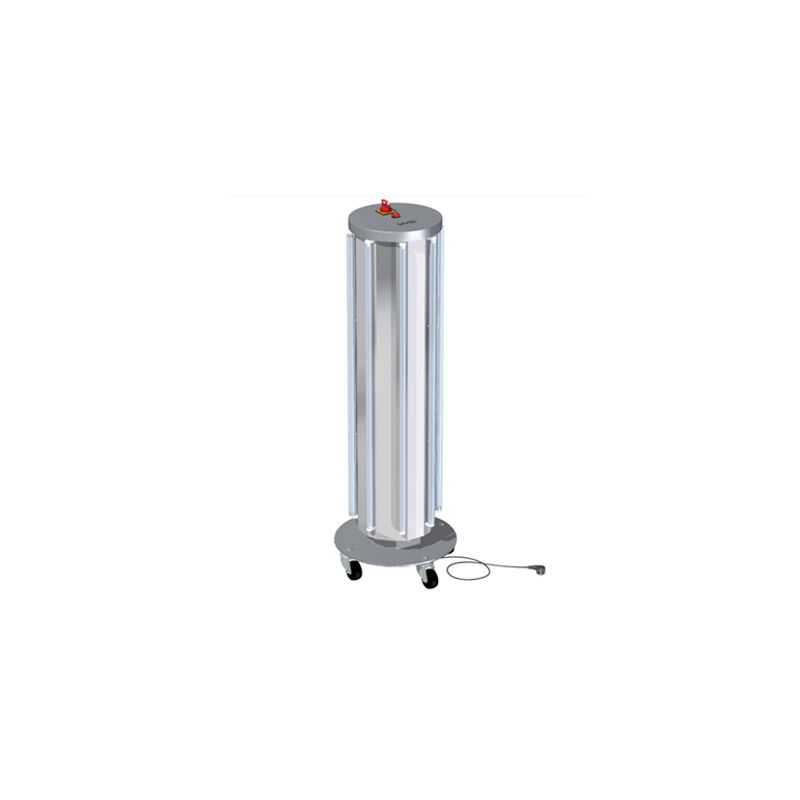 RAB-836 germicidal equipment for the application of germicidal radiation to disinfect the ambient air and surfaces in rooms such as: rooms, chambers, passageways ... in the absence of people. It is important to note that, for whatever reason, if direct radiation does not reach the parts with possible contamination, the germicidal effect will not occur; Therefore, it must be ensured that the UV light reaches all the areas to be treated correctly. To ensure maximum disinfection, it should be placed at various points in the room. In this way the light will reach most surfaces.