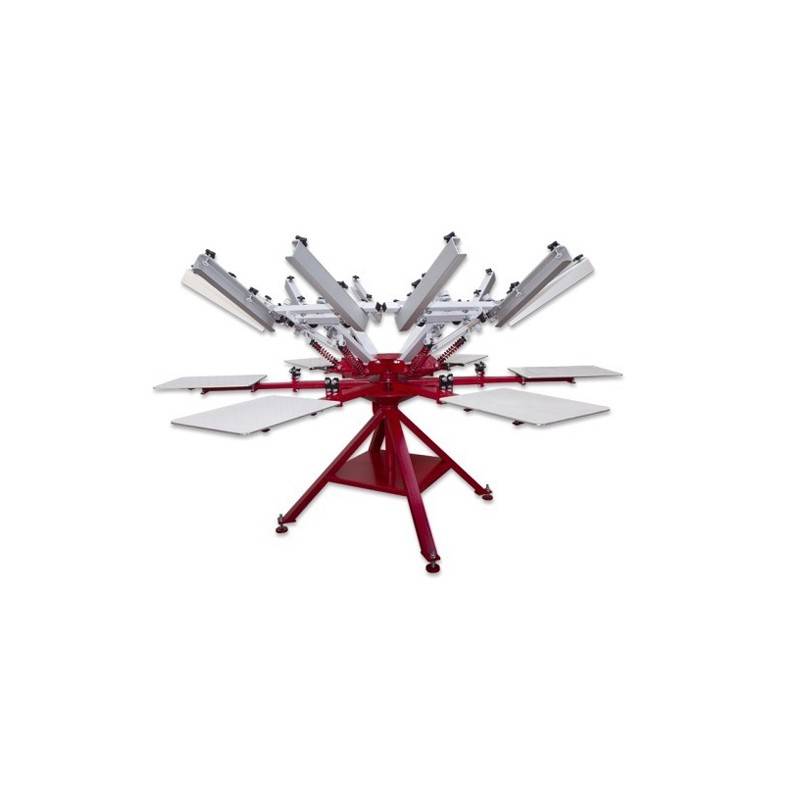 Manual screen printing octopus that has the commercial guarantee of Anatol, a world reference in the manufacture of textile octopuses. It is a compact and lightweight equipment that has been manufactured with top quality materials that guarantee good operation over time. Available in different configurations: From a 4-armed, 4-station octopus to an 8-armed, 8-station octopus.