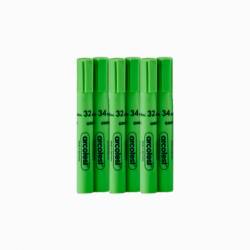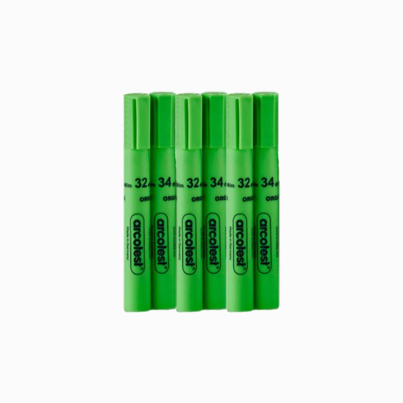 Eco-friendly test markers are 5 ml test markers with a specific surface tension and dyed green, which have been developed to be able to offer non-toxic test inks and exempt from labeling requirements. The application and handling of these test markers are governed by DIN 53364 and ISO 8296.