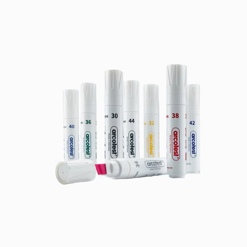 Jumbo pink test markers are markers with a specific surface tension and tinted pink. They have been specially developed to be able to offer non-toxic test inks. Its application and handling are governed by the DIN 53364 and ISO 8296 standards.