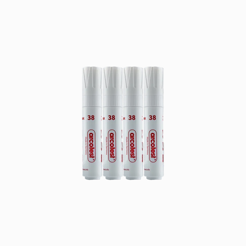 The Jumbo Pink Test Marker Set is a set of markers with a specific surface tension and tinted pink. They have been specially developed to be able to offer non-toxic test inks. Its application and handling are governed by the DIN 53364 and ISO 8296 standards.