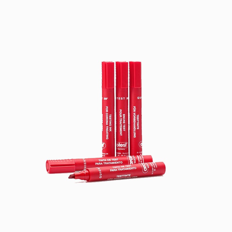 Thanks to Quicktest 38 it is possible to check whether the pretreatment of polyolefins (polypropylene, polyethylene, polybutylene) has been carried out correctly. The liquids contained in the pencil remain in the form of a continuous line with a surface tension value of about 38mN / m or higher, and pass underneath. The line applied with Quicktest38 dries in seconds, as it does not have to be cleaned.