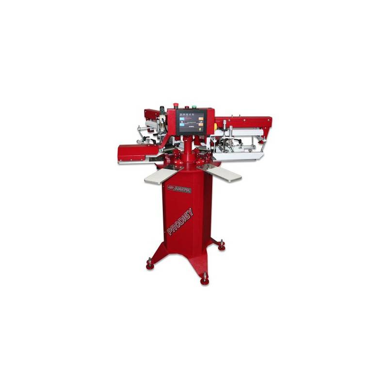 The Prodigy Automatic press consists of an automatic press designed for Silk-screen printing of labels and other objects of little size. Letting high speeds of Silk-screen printing in impressions of up to 4 colours with a maximum area of 15.24 cm x 15.24 cm.